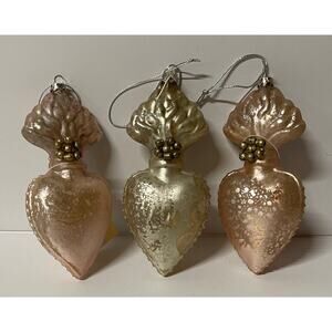 Set of 3 Sacred Heart Pink and White Holiday Ornaments. kk379