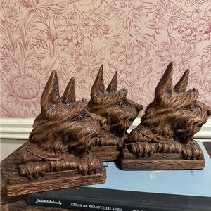 Set of 3 Scottie dog bookends and card holder Syroco Wood