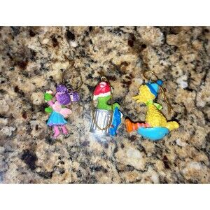 Set of 3 Sesame Street mini ornaments Oscar the grouch big bird Abby Cadabby