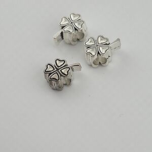 Set of 3 Silver Tone Four-Leaf Clover Beads with Heart Leaves