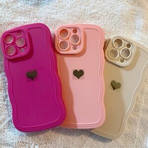 Set of 3 Soft Silicone Cases for iPhone 15 Pro Max - Pink, Peach and White -