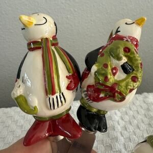 Vintage Debbie Mumm cheese spreaders. These 3 winter penguin pals will add a festive touch to your holiday table. Guests will enjoy their adorable smiles and cute winter garb. These little guys measure approximately 6 inches in length. Hand wash.