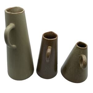 Set of 3 Stoneware PItchers & Pine Wood Tray from Creative Co-Op (DF6574) New