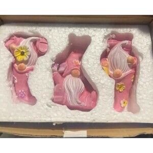 Add a splash of enchantment to your home with this delightful set of three pink gnome figurines! Perfect for bringing a touch of whimsical charm to any space, these adorable little characters are sure to make you smile. Each gnome is uniquely designed with lovely details like delicate flowers and playful butterflies, making them ideal for spring decor, fairy gardens, tiered trays, or shelf styling.