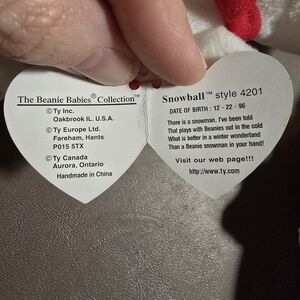 Set of 3 TY Beanie Babies christmas snowmen MS.SNOW/MR.SNOW/SNOWBALL W/TAGS