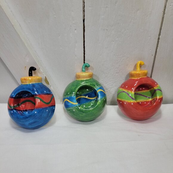 Set of 3 - Tea-light candle holder - ceramic - Hand Painted - Marianne Richmonds