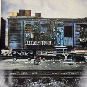 2. Box Car Home - this is a print of the painting "And Homeless, Near This Home I Stood" by artist Charles P. Wood. the subject is a box car with human inhabitants and was originally done in oils on canvas. The information has been taped on the back of the print.