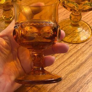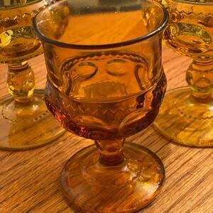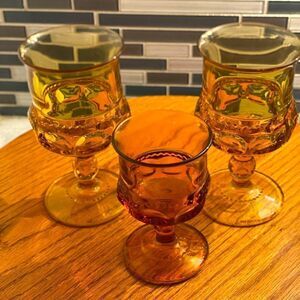 Set of 3 Vintage Amber Kings Crown Thumbprint Goblets Glasses water wine juice