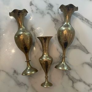 Set of 3 Vintage Brass Bud Vases (or Taper Candle Stick Holders)