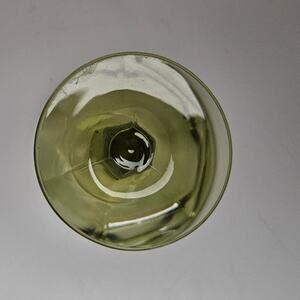 Set of three vintage green pressed-glass compotes featuring a scalloped bowl and faceted pedestal stem. Each stands approximately 4.5" tall with a light olive-green tone and molded panel details. Ideal for serving desserts, candy, or adding to a retro glassware collection. All pieces show light surface wear from age; no chips or cracks noted. See photos for details.