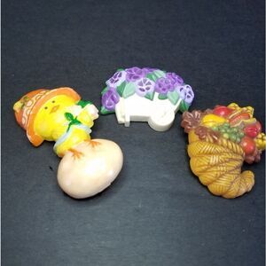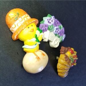 Set of 3 Vintage Hallmark 70's 80's Pins Cornucopia Pansie Cart Spring Chicken