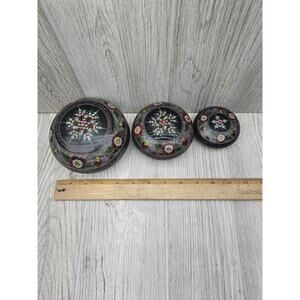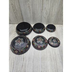 Set of 3 Vintage Hand-Painted Lacquer Nesting Trinket Jewelry Boxes with Floral
