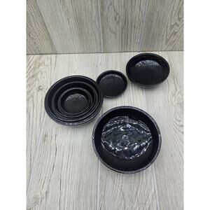 This set of 3 vintage hand-painted lacquer nesting trinket jewelry boxes features a beautiful floral pattern on a black background. The round-shaped boxes are small in size, perfect for storing small trinkets or jewelry. Each box is meticulously hand-painted, adding a unique touch to the set. These decorative collectibles are a charming addition to any collection of keepsake boxes, adding a touch of elegance and nostalgia to any space.