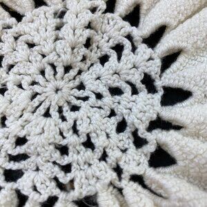 Set of 3 Vintage Handmade Beige Crochet Square Floral Coasters