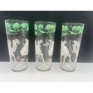 Set of 3 Vintage Hazel Atlas “Camel in Oasis” Tumblers Mid-Century Glassware 6"