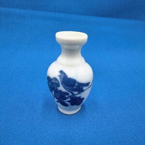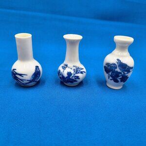 Set of 3 Vintage Miniature Blue & White Porcelain Vases Chinese Chinoiserie 2"