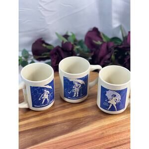 Set of 3 Vintage Morton Salt Girl Coffee Mugs - When it Rains it Pours
