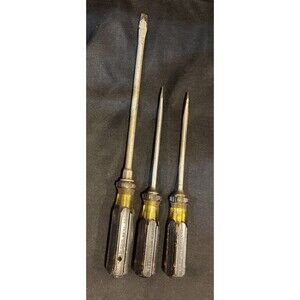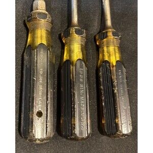Set of 3 Vintage Stanley 100 Plus Flathead Yellow & Black Screwdrivers