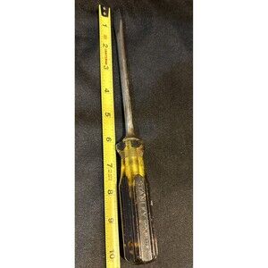 This set of 3 vintage Stanley 100 Plus flathead yellow & black screwdrivers is a prized collector's item for those interested in woodworking and tools. Made in the United States, these original vintage screwdrivers bear the renowned Stanley brand, known for producing high-quality tools for carpentry and woodworking tasks. With their classic design and functionality, these screwdrivers are not only useful but also a nostalgic piece of history for enthusiasts of traditional craftsmanship.