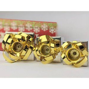 Set of 3 Vtg Silver Gold Taper Candle Holders Gift Boxes Christmas Holiday Decor