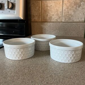 Set of 3 White Honey Comb Pattern Bake & Serve Porcelain Porcelana Bowls