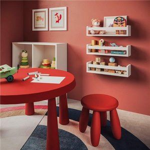 Set of 3 White Nursery Room Shelves - Solid Wood for Books (Classic White)