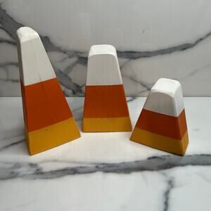 Set of 3 Wood Candy Corn Chunky Wood Halloween Fall Table Decor
