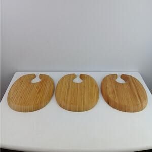 Set of 3 Wood Wine & Dine Plates Wine Mingling Plates With Wine Glass Holder