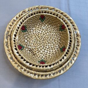 **Please zoom into all pictures. There are some flaws with these as shown in last two pictures. One basket has something in it and some of the wicker is peeling off in some areas. Overall good condition