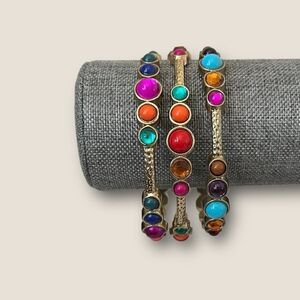 Set of 3 bangle Bracelets gold tones & multi color stones