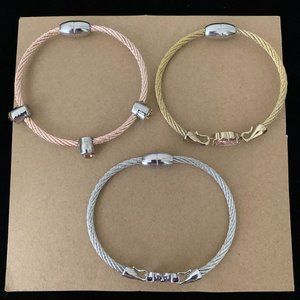 Set of 3 cable bangles with Crystal Motif (NWOT)