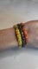 Set of three costume stretch bangles. Gold with yellow, gold with orange and gold with black. Signs of wear as evidenced in photos and video. Still very wearable.