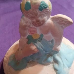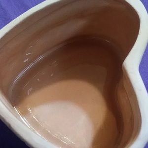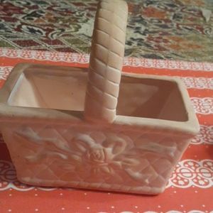 Terracotta matte color trinket boxes. Heart shape ❤ and the other round. The basket is very cute as well.These are very shabby chick decor, victorian, romantic style.