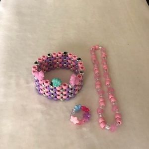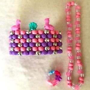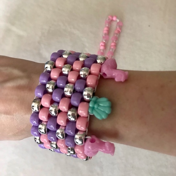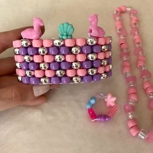 Kawaii pastel pony beads accessories. Bracelet cuff with llama and seashell charm accents. Choker/headband. Ring. Rave dance edm candy fun 🤩