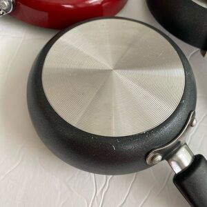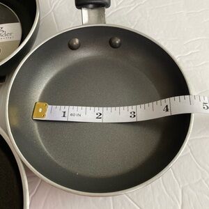Set of 3 mini pans one is new, 2 pans used in really good condition please see all the pictures, fits one egg