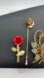 Set of 3 pins and 1 screw back earrings gold tone romantic romantic rose leaves