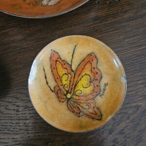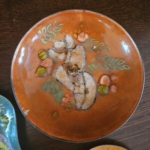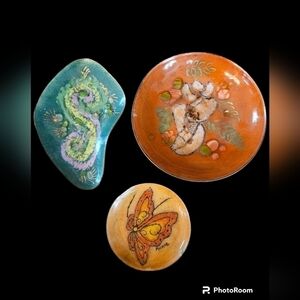 set of 3 small mid century modern enameled studio art trinket dishes.