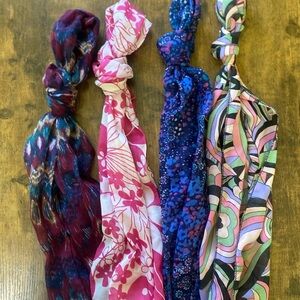 Enhance your wardrobe with this 30 set of vibrant women's scarves. Featuring a mix of floral and abstract patterns, these scarves come in many colors and styles sold as a 30 item ser Perfect for adding a touch of elegance to any outfit.