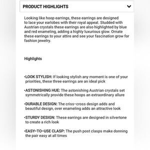 These earrings are designed to lace your earlobes with their royal appeal. Beautifully studded with Austrian crystals and highlighted with red and blue enameling, adding a highly luxurious glow.