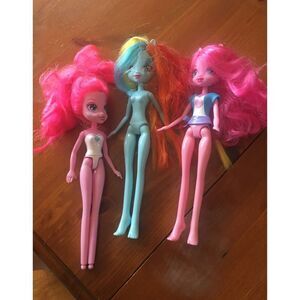 These Equestria dolls are beloved characters from different years, and they come without clothing. From left to right, the collection includes dolls from 2012, 2013, and 2014. Despite not having clothing, they are in good condition, preserving their classic appeal.