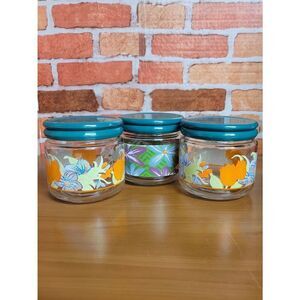Available for your consideration is a Set of 3 Vintage Glass Floral Canisters. Canisters are from Malaysia. Lids do show some minor wear shown in photos. Great way to store candy, cottonballs,Qtips,paperclips,and rubber bands. Measurements are included in photos. Preview pictures for a visual description before purchasing.