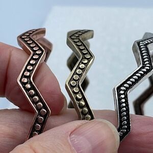 Set of 3 chevron bangles in silver gold copper colors by western wear . Minimal wear. Boho festival lagenlook