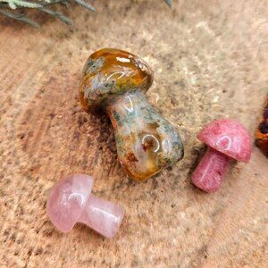 These 3 adorable nature stone carved mushroom set will surely give your area more energy and accent. There are 3 different stones :