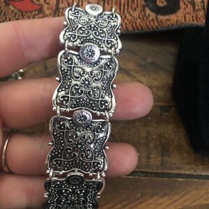 Set of 3 silver played necklace earrings and bracelet.necklace can be choker