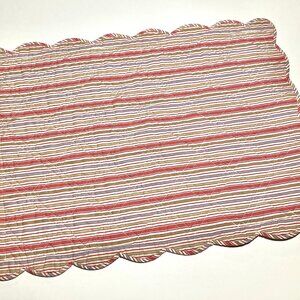 Mats are reversible and have 2 separate looks! Tasteful contrasting fabrics, well made, amazingly lightweight. Diamond-pattern used in the quilting. Fabric content not marked; my guess it’s a blended cotton. Great condition, I see no flaws. Machine washable and machine dry, no need to iron. See pictures for details.