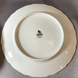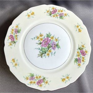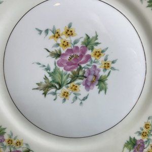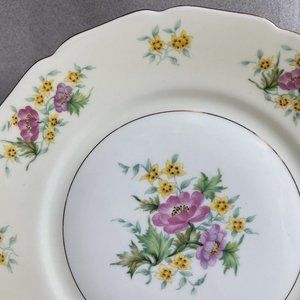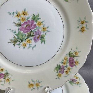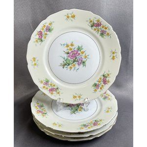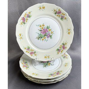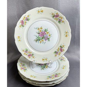 Set of 4 Black Knight Germany Yellow Pink Floral Gold Trim Dinner Plates 10"