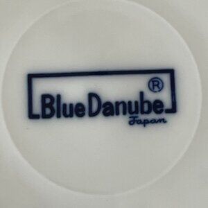 Beautiful set of four (4) Blue Danube onion pattern cups and saucers made in Japan by Lipper International. These vintage china cups and saucers are made of fine porcelain and have the rectangular backstamp. They are white and blue.