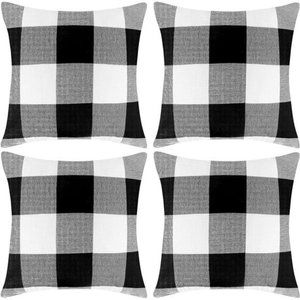 Set of 4 Buffalo Check Plaid Throw Pillow Covers Farmhouse Outdoor Pillow Case