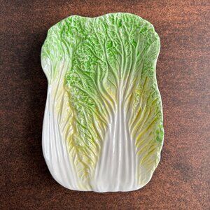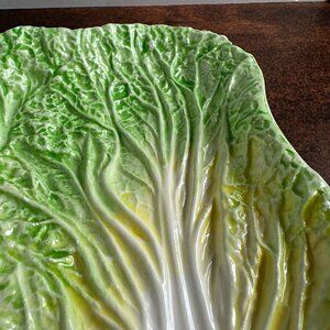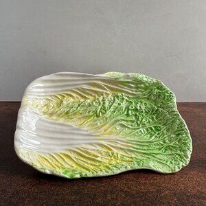 This set of 4 cabbage leaf majolica plates brings a cheerful touch of garden-inspired vintage charm to your table. Each molded ceramic plate features glossy green, yellow, and white napa-cabbage leaf detailing—perfect for serving vegetables, salads, or sides.
