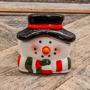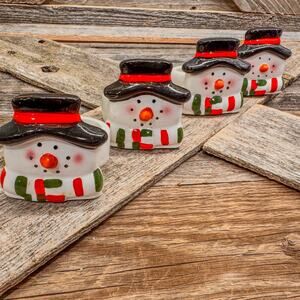Set of 4, Ceramic Snowman Napkin Rings/Holders, Kitchen Christmas Holiday Decor